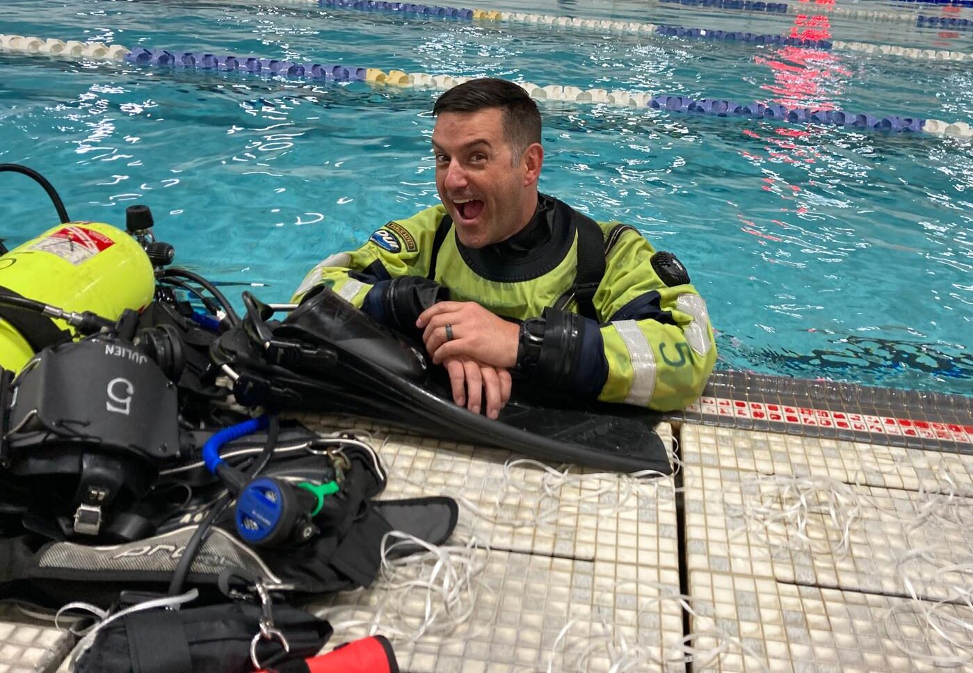 In 2011 the dive team on his fire department had a diver get injured and got shut down by OSHA. At the time, Tim had no interest in public safety diving but at their request consulted on the situation. It did not take long before Tim got involved in rebuilding the team and the instructor at that time took him under his wing. This started Tim’s journey to becoming an instructor and his passion for the PSD community grew by the second.